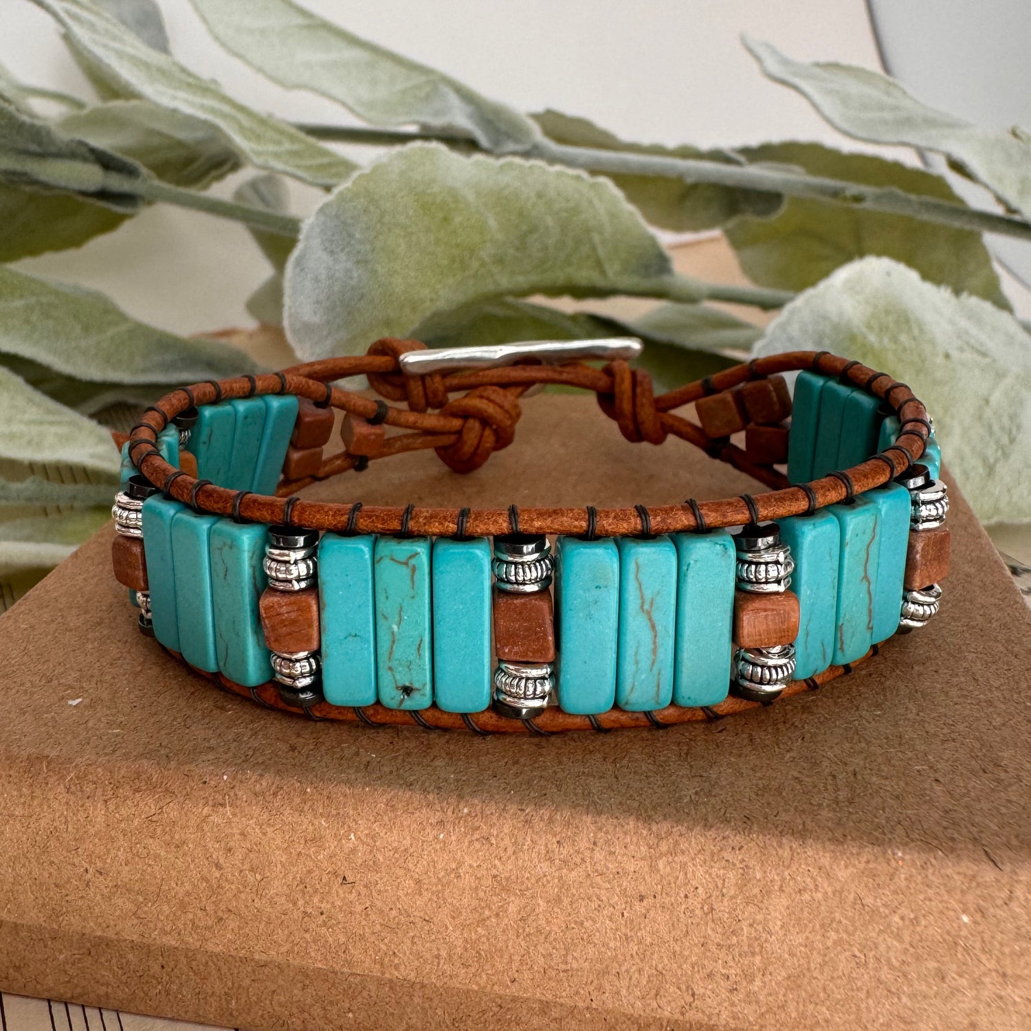 Turquoise and Hematite Beaded Brown Leather BraceletRegular price From $26.00 USDRegular priceUnit price per-