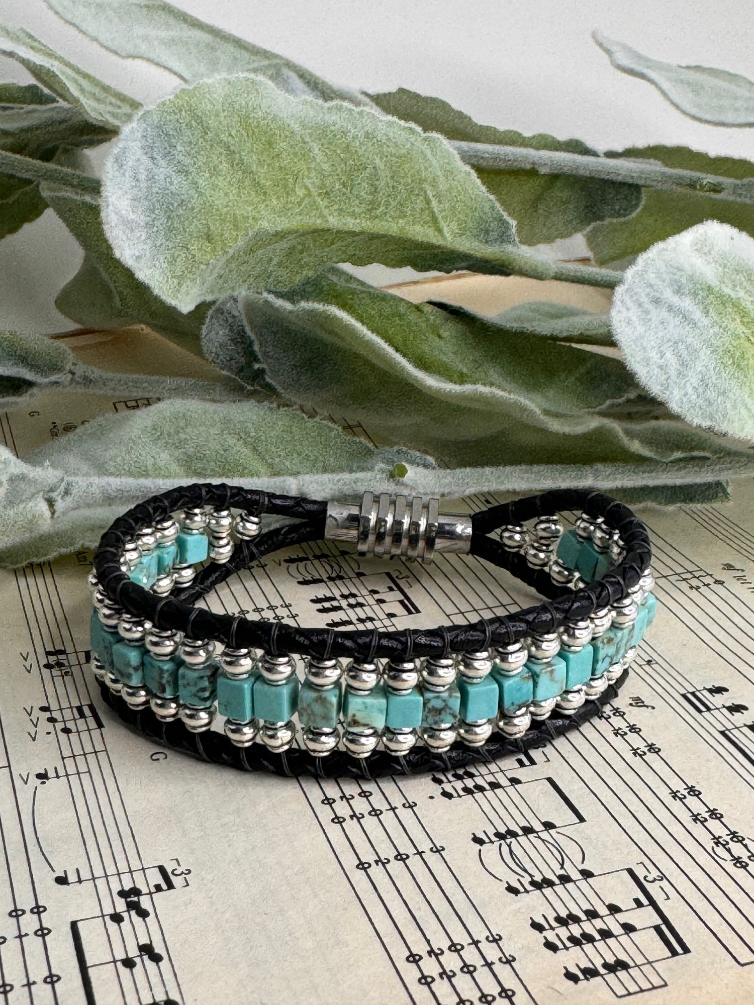 Turquoise Magnesite Beaded Black Leather Bracelet - Blue WaterRegular price From $28.00 USDRegular priceUnit price per-