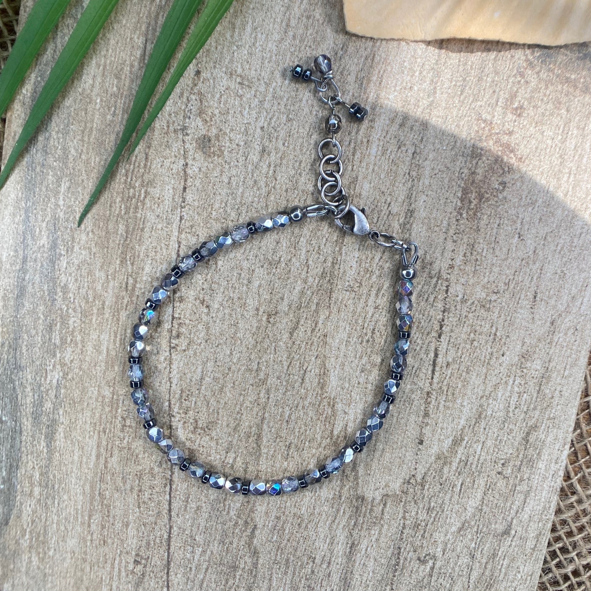 - Silver rainbow crystals and hematite beads in 2 & 4mm