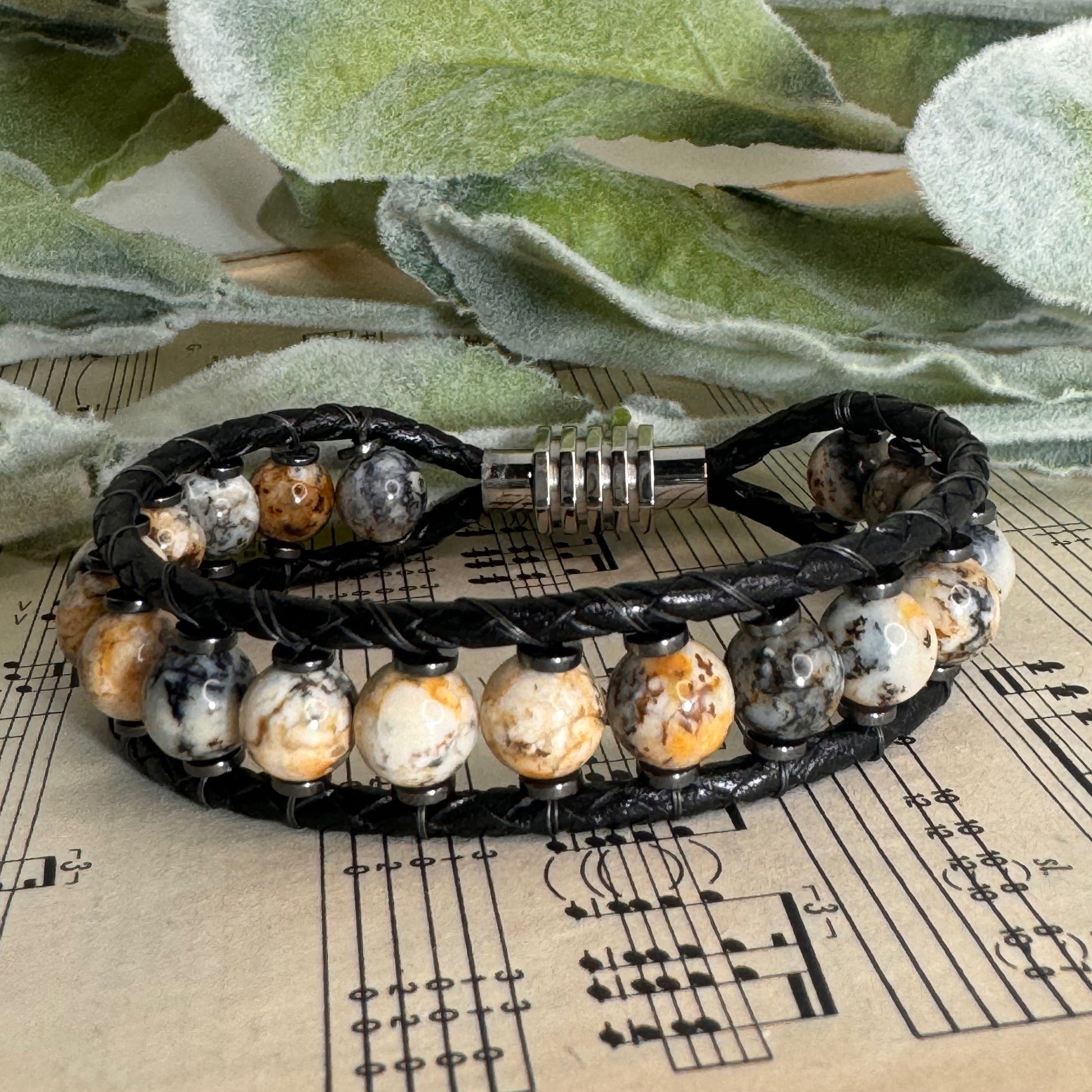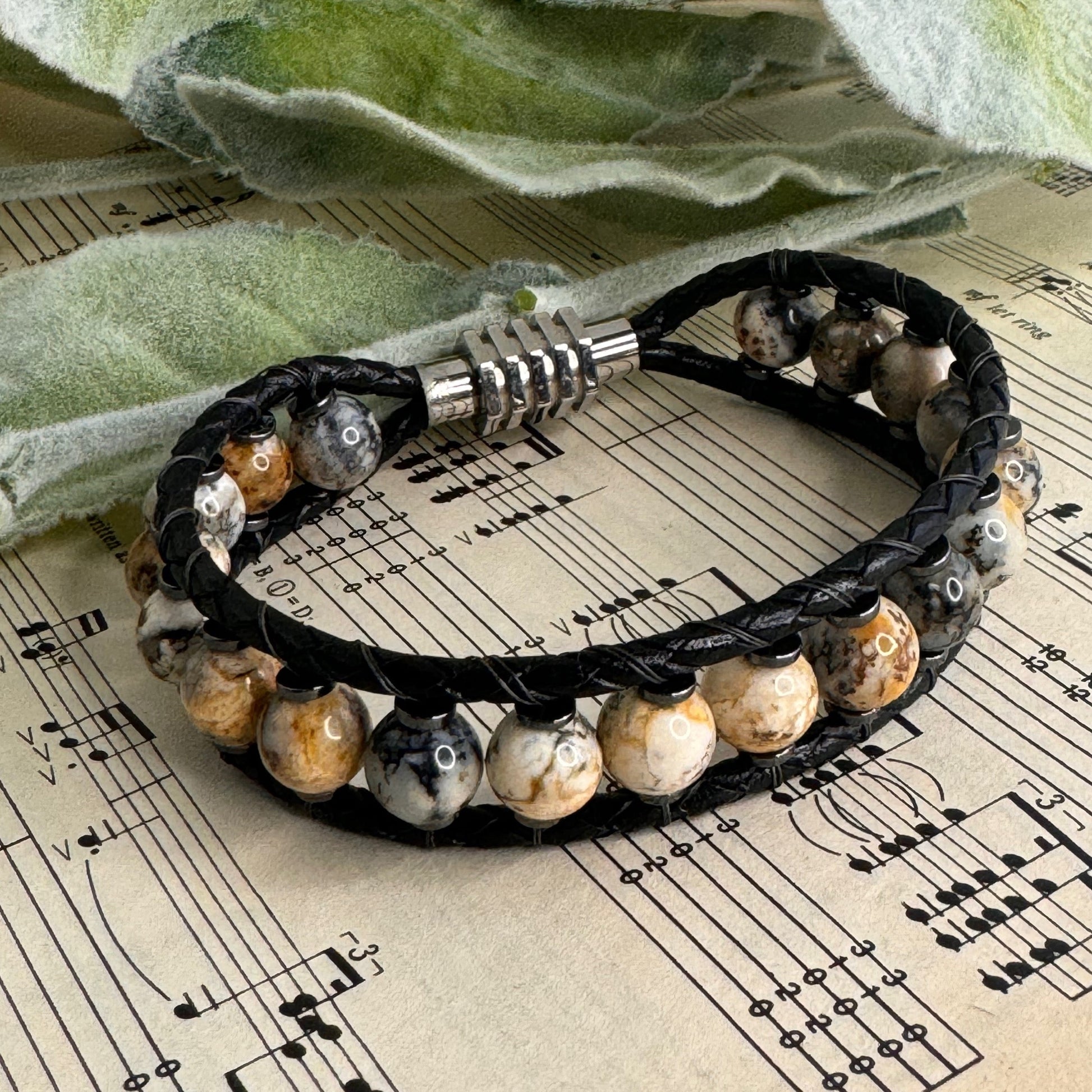 Natural Multicolor Dendritic Moss Opal with Steel Clasp - Dendritic Duo